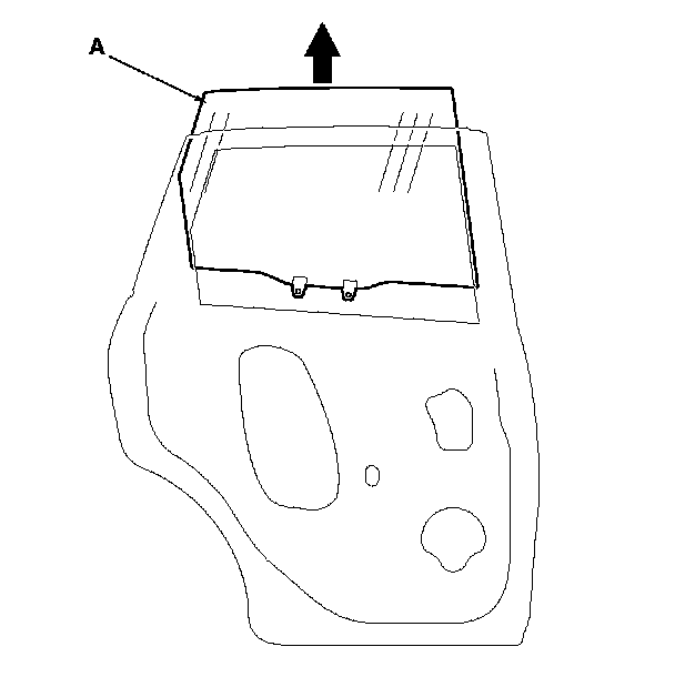 8. Carefully remove the glass (A) out through the window slot. Take care not to drop the glass inside the door.