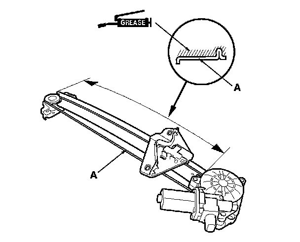 11. Apply multipurpose grease to all the sliding surfaces of the regulator (A) where shown.