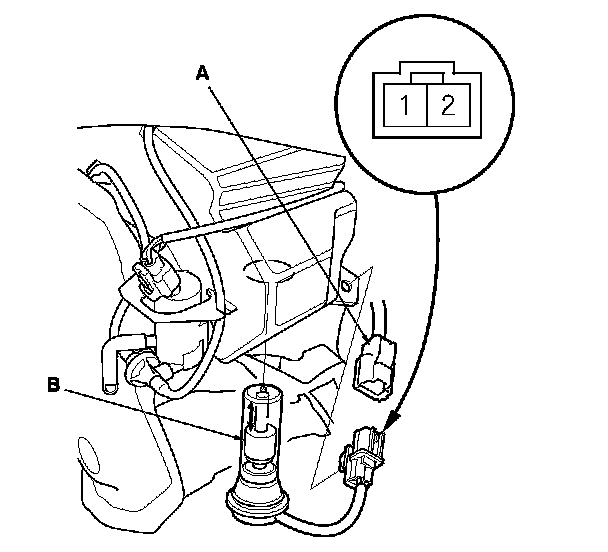 2. Disconnect the 2P connector (A) from the washer fluid level switch (B).