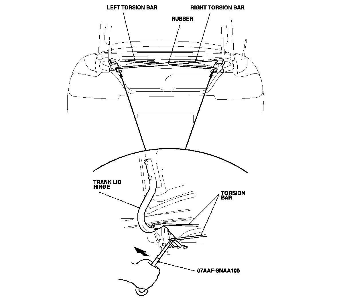 - The right torsion bar has a piece of rubber on it as shown. Install the right and left torsion bars in their proper locations.