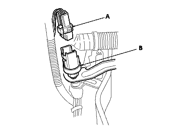 1. Disconnect the brake pedal position switch connector (A), and remove the switch (B).