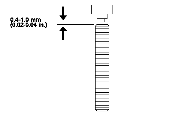 2. Measure the air gap between the wheel speed sensor and pulser all the way around while rotating the pulser. Remove the rear brake disc to measure the gap on the rear wheel speed sensor. If the gap exceeds 1.0 mm (0.04 in.), check for a bent suspension arm.