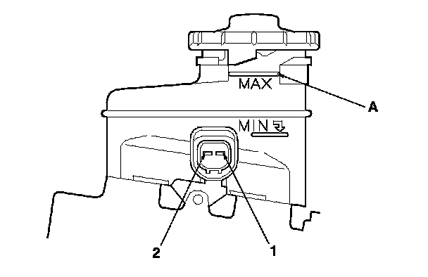 - Fill the reservoir with brake fluid to the MAX (upper) level (A). With the float up, there should be no continuity.
