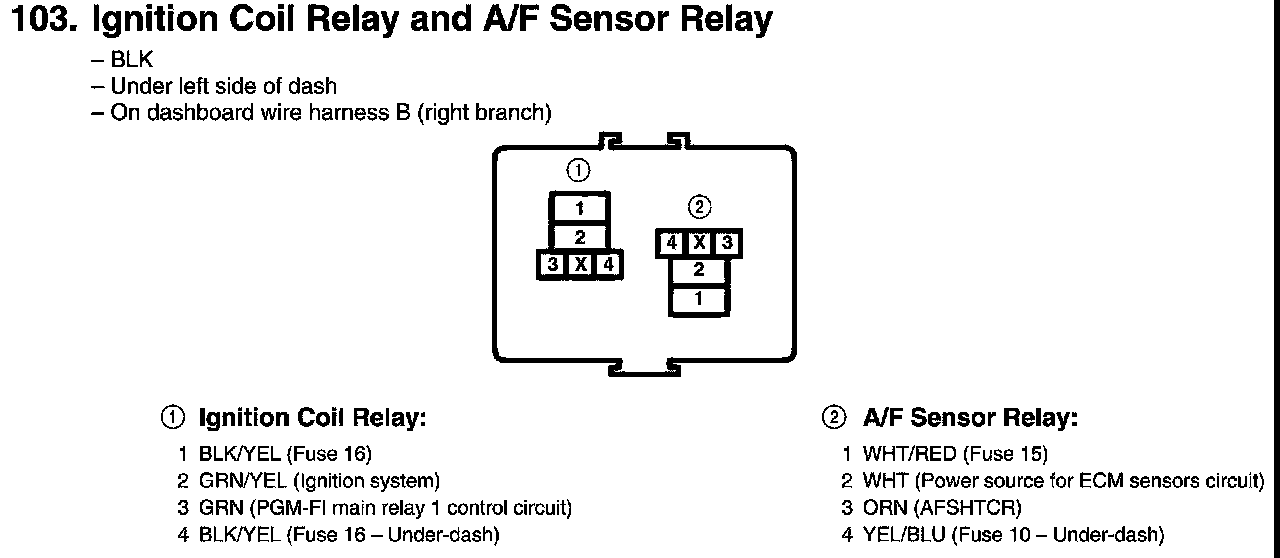 View 103 Ignition Coil Relay And A/F Sensor Relay Connector View