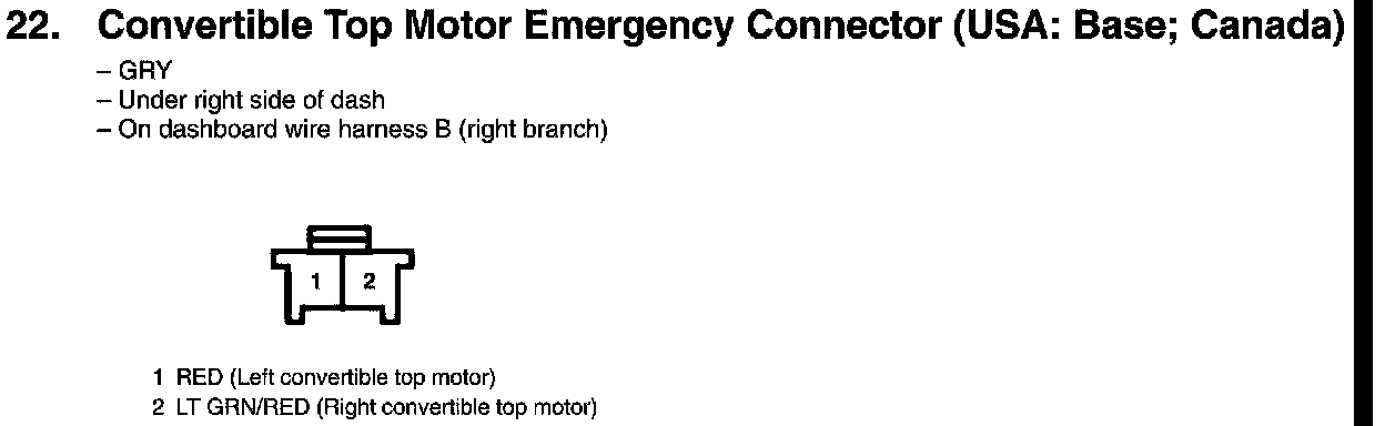 View 22 Convertible Top Motor Emergency Connector View (USA: Base; Canada)
