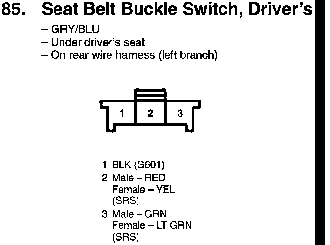 View 85 Driver's Seat Belt Buckle Switch Connector View