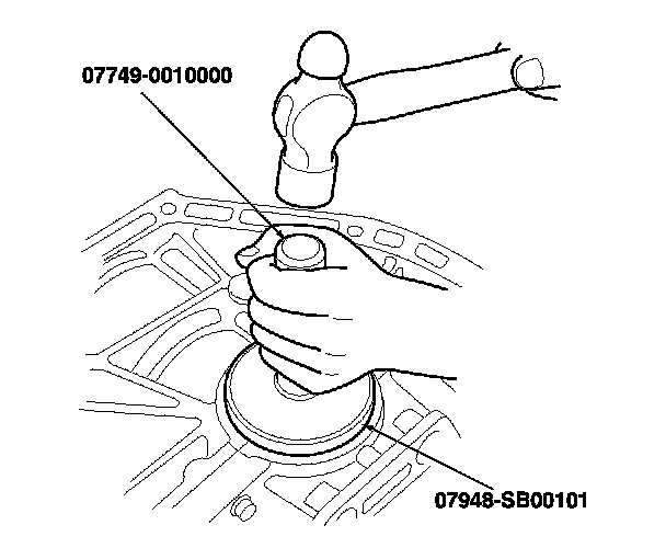 21. Use the driver and the driver attachment to drive a new crankshaft oil seal squarely into the engine block to the specified installed height.