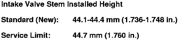 9. If the valve stem installed height is over the service limit, replace the valve and recheck. If it is still over the service limit, replace the cylinder head; the valve seat in the head is too deep.