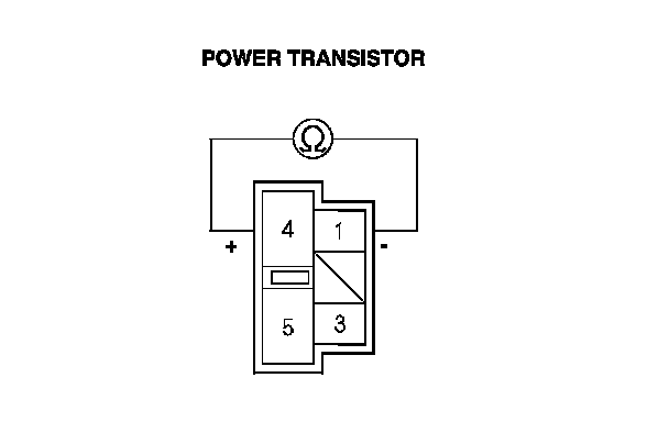 2. Measure the resistance between power transistor terminals No. 1 and No. 4. It should be about 1.4-1.5 kOhms.