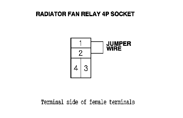 6. Connect the radiator fan relay 4P socket terminals No. 1 and No. 2 with a jumper wire.