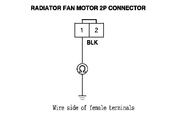 10. Check for continuity between radiator fan motor 2P connector terminal No. 1 and body ground.