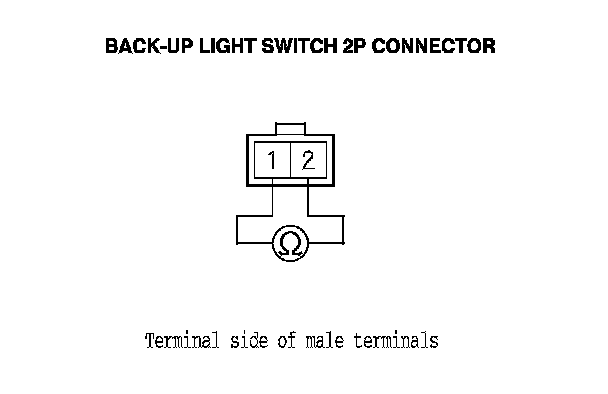 2. Check for continuity between back-up light switch 2P connector terminals No. 1 and No. 2. There should be continuity only when the shift lever is in reverse.