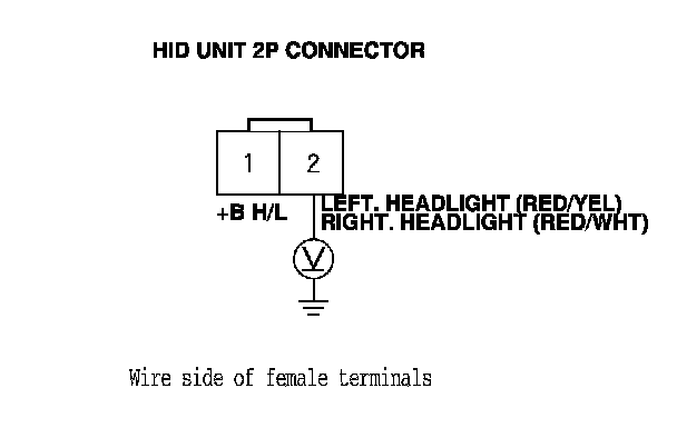 16. Measure the voltage between the HID unit 2P connector terminal No. 2 and body ground.