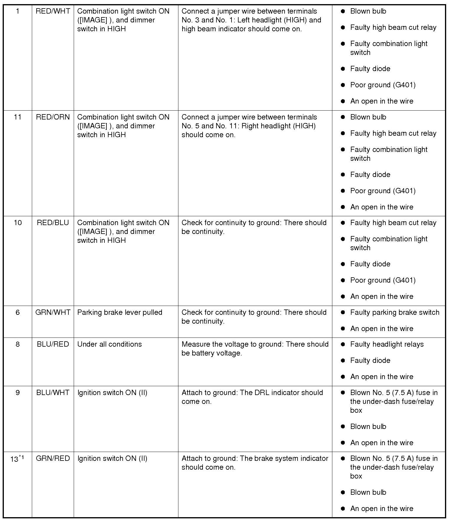 Daytime Running Lights Control Unit Input Test (Canada models)