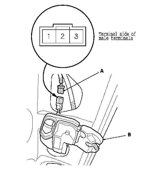 2. Disconnect the 3P connector (A) from the trunk lid latch (B).