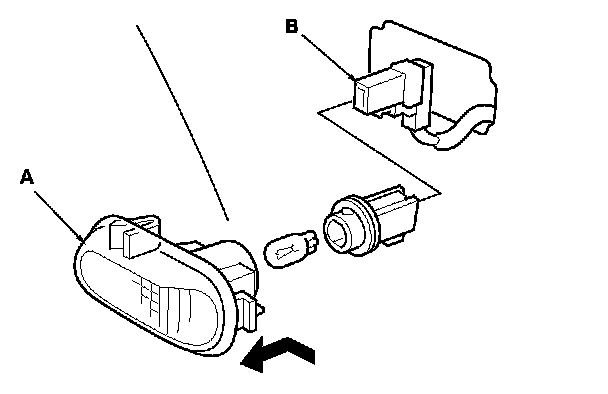 1. Push the side turn signal light (A) forward, then remove it from the fender.