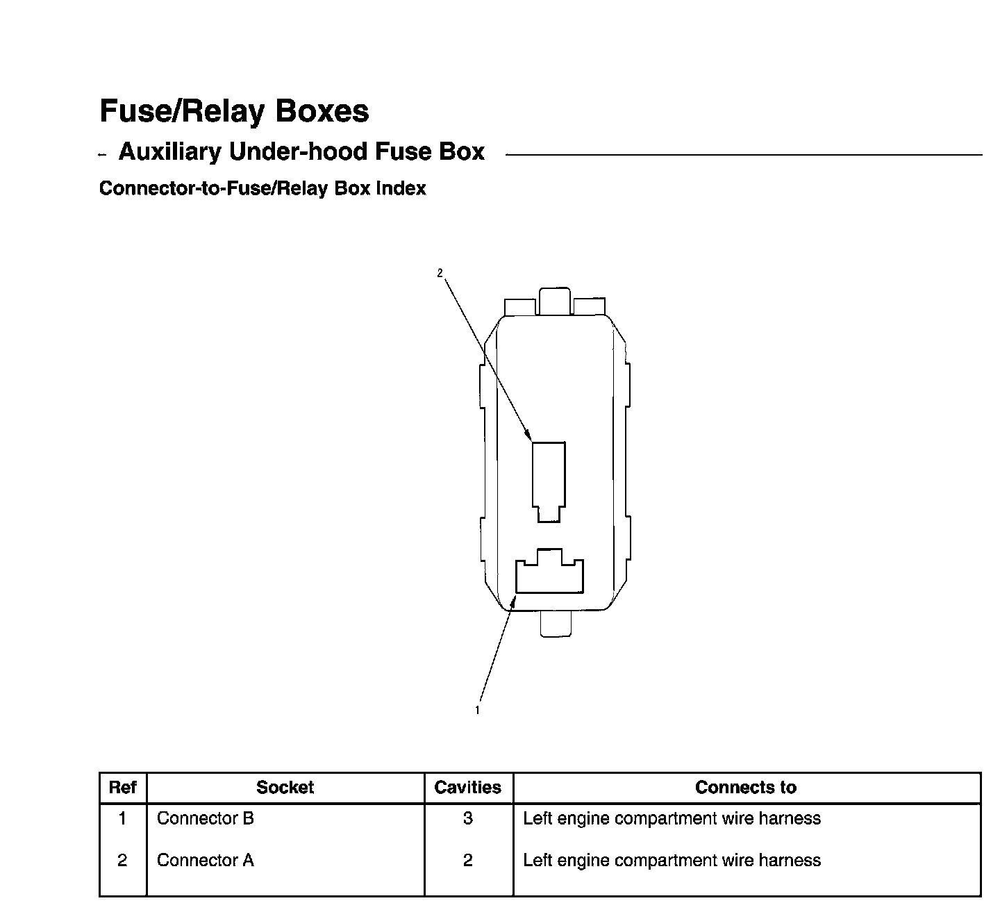 Auxiliary Under-Hood Fuse Box - Connector-to-Fuse/Relay Box Index