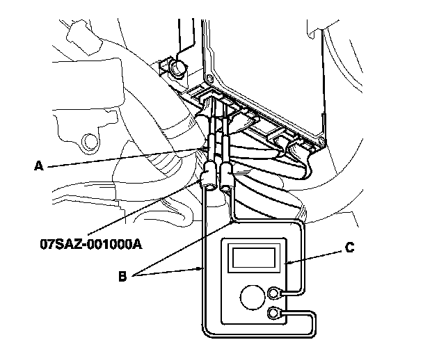 1. Connect the HDS to the data link connector (DLC) (A) located behind the driver's side of the front console.