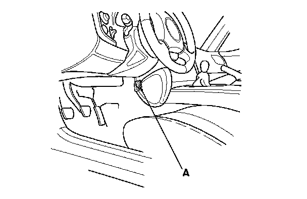 2. If the MIL stays on, connect the HDS to the data link connector (DLC) (A) located behind the driver's side of the front console.