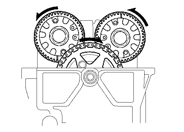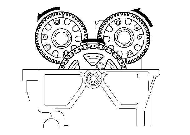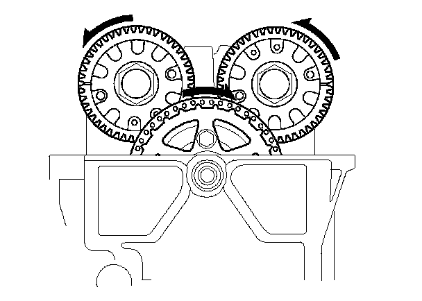 9. Rotate the crankshaft 180 ° clockwise (camshaft gears turn 90 °).