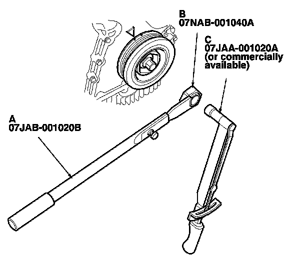 Tighten the bolt with a torque wrench and a heavy duty 19 mm socket (C).