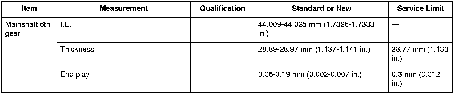 Mainshaft 6th Gear Specifications