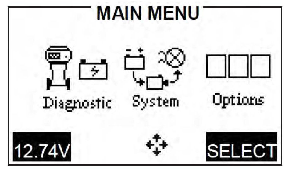 5. In the main menu, scroll over to the SYSTEM icon, and press the SELECT key.