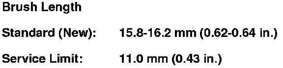 11. Measure the brush length. If it is shorter than the service limit, replace the brush holder assembly.