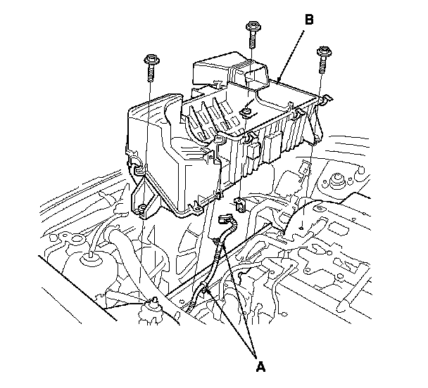 5. '06-09 models: Remove the IAT sensor harness clamps (A), then remove the air cleaner housing (B).