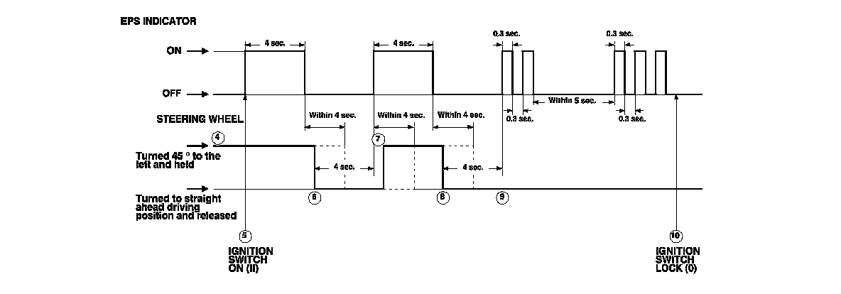10. Within 4 seconds after the EPS indicator comes on, turn the steering wheel 45 degrees to the left again and hold it in that position.