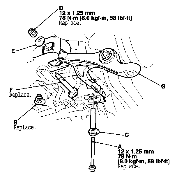 - First install all of the components, and lightly tighten the bolts and the nuts, then raise the suspension to load it with the vehicle's weight before fully tightening to the specified torque values.
