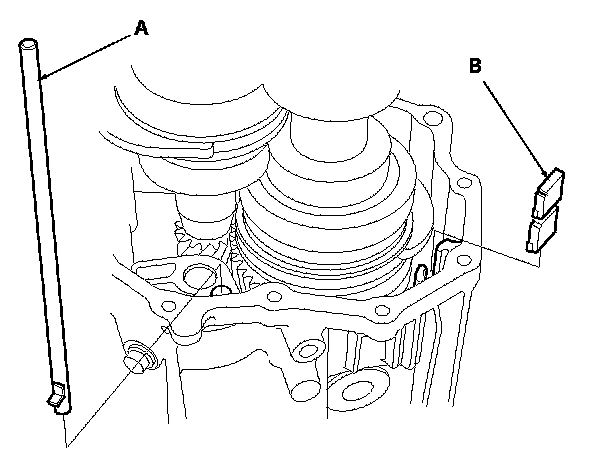 1. Remove the oil pump gear shaft (A) and oil pump gear (B).