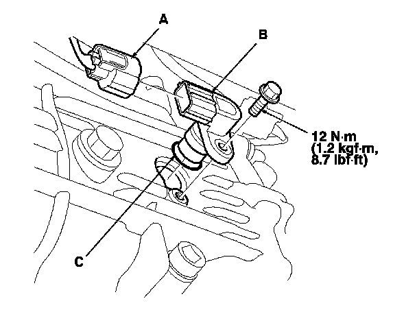 3. Install the parts in the reverse order of removal with a new O-ring (C).