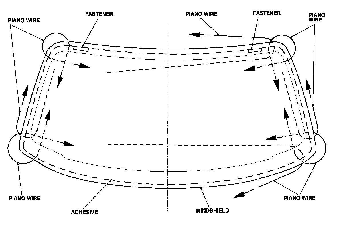 - When replacing a broken windshield, a commercially available windshield cutter can be efficiently used for cutting the adhesive. For details, follow the instructions of the tool manufacturer.