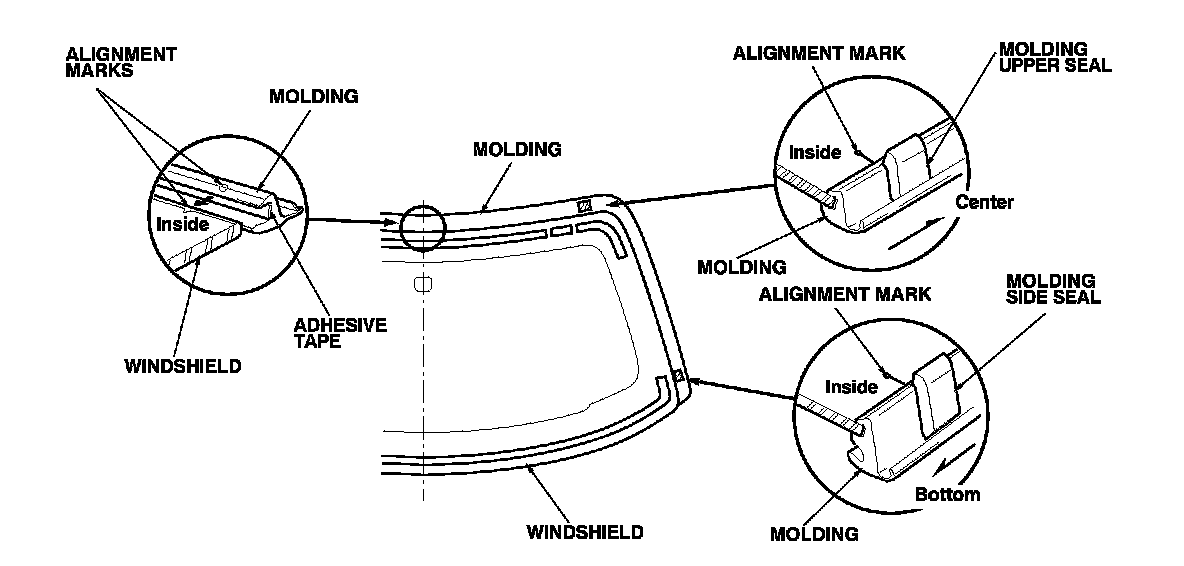 - Be sure the alignment marks on the molding line up with the alignment marks on the windshield.