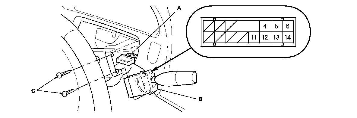 3. Remove the two screws (C), then pull out the wiper/washer switch.