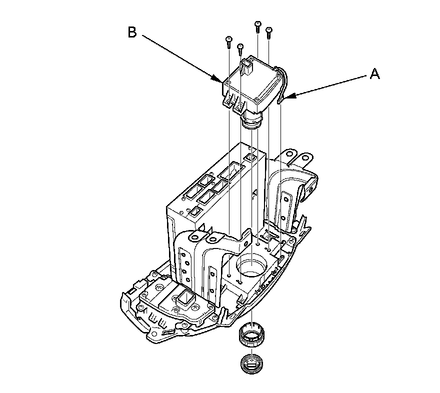 3. Disconnect the interface dial connector (A). Remove the screws and interface dial (B).