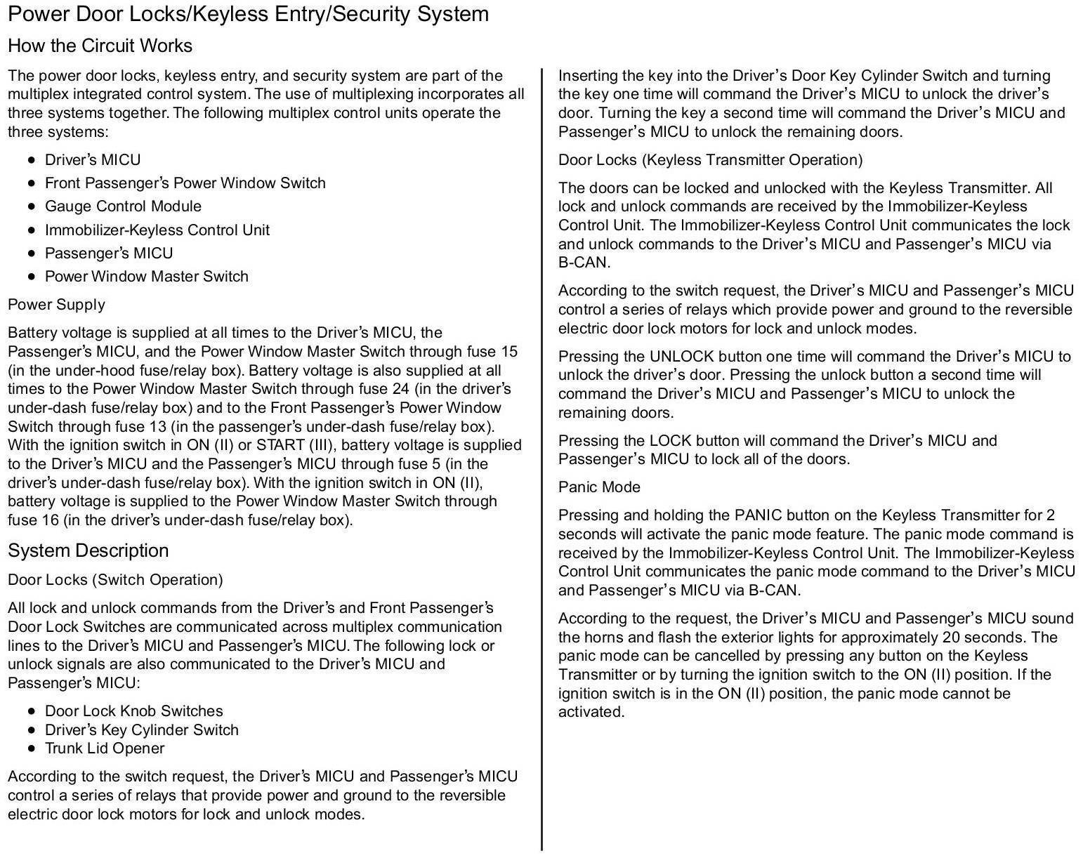 How The Power Door Locks/Keyless Entry/Security System Circuit Works