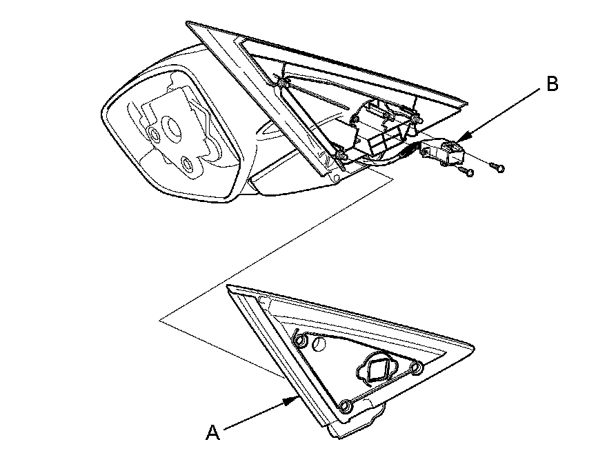 8. Remove the three screws, and separate the mirror housing (B) from the bracket (C).