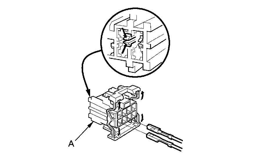 6. Disassemble the power mirror 8P connector (A), and remove all terminals from it.