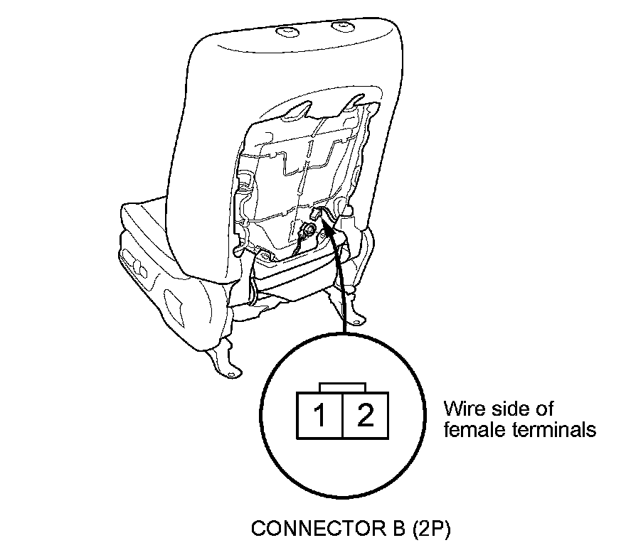 4. Check for continuity between seat heater connector B (2P) terminals No. 1 and No. 2. There should be continuity.