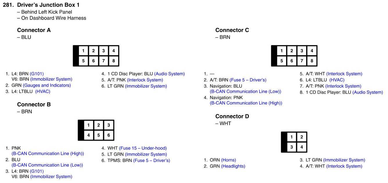 View 281 - Driver's Junction Box 1 Connector View
