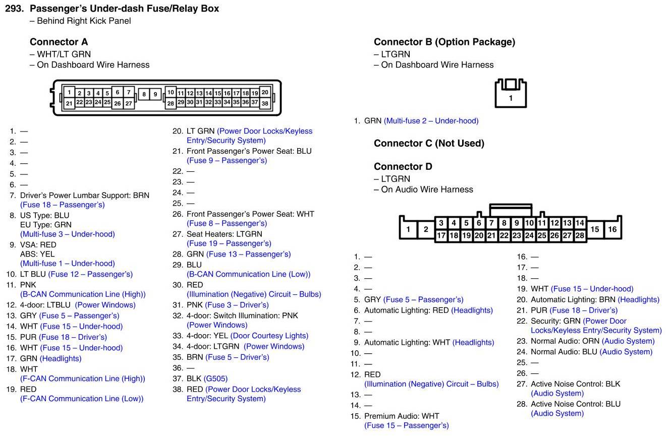 Passenger's Under-dash Fuse/Relay Box Connector View
