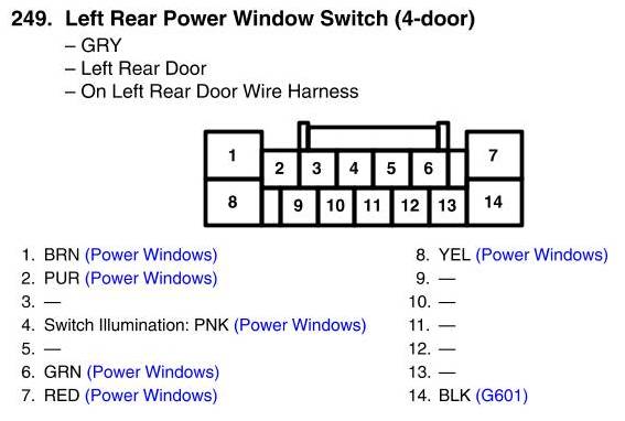 Left Rear Power Window Switch Connector View (4-Door)