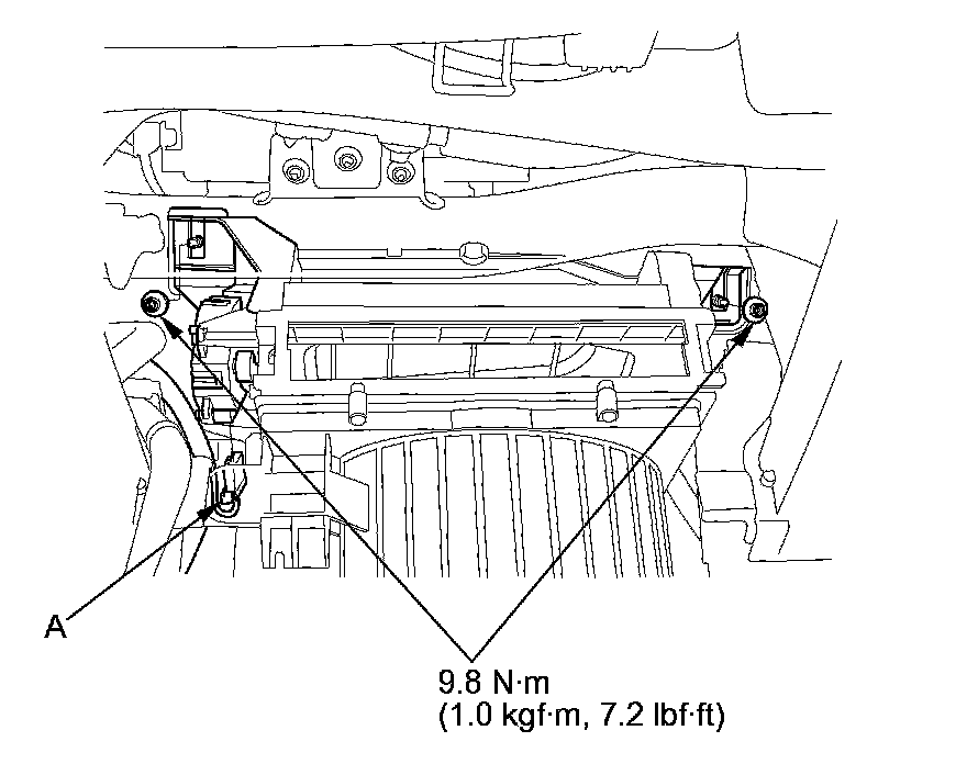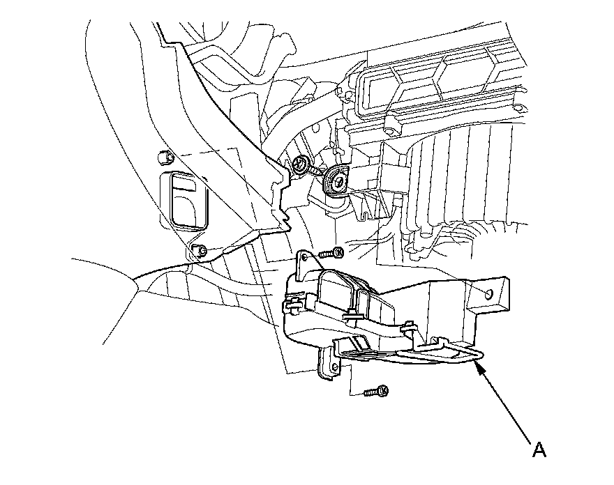 9. Remove the self-tapping screws, and the passenger's heater duct (A).