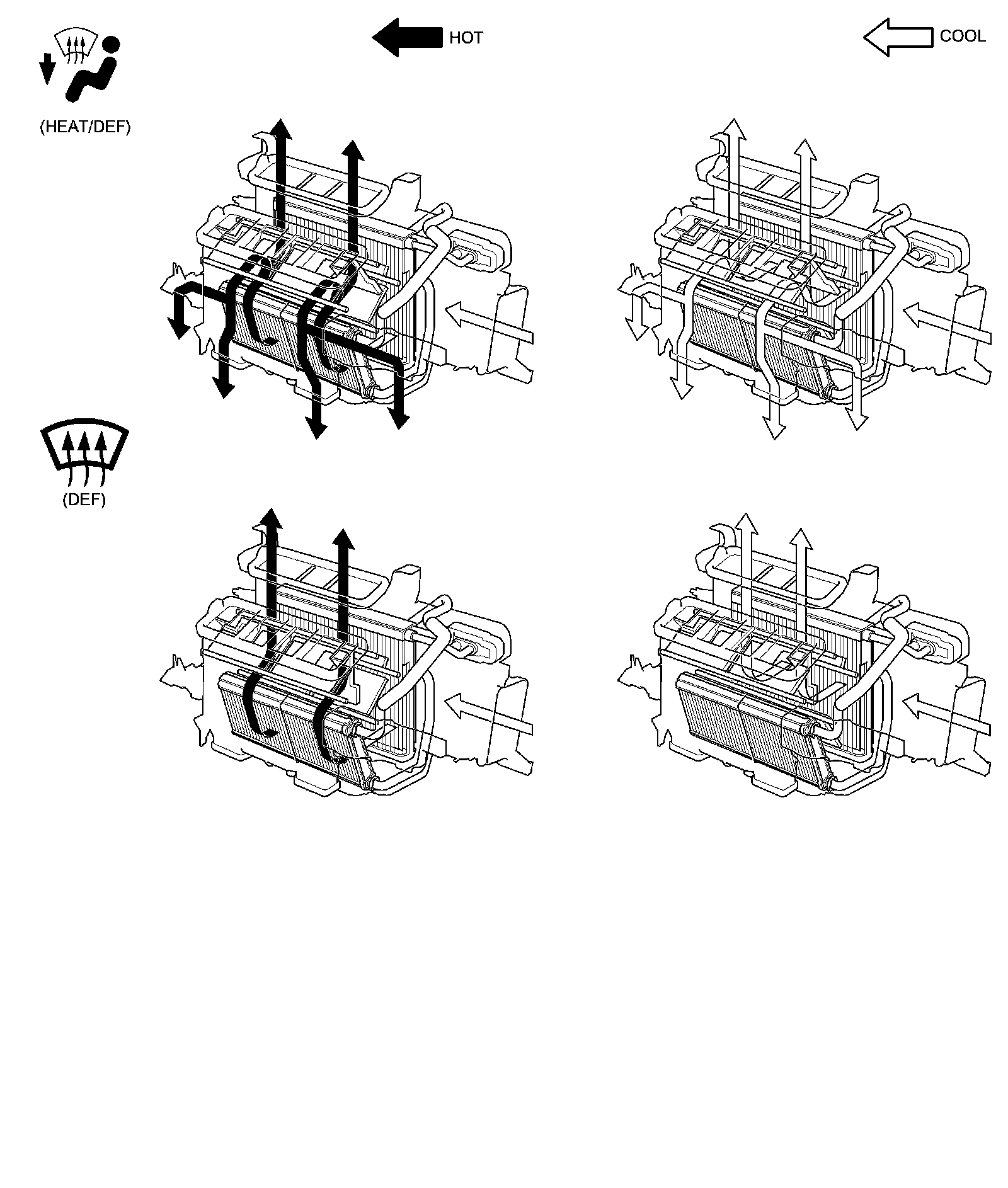 In the event that the navigation system malfunctions, or when driving in areas where the navigation cannot determine the vehicle position (non-coverage areas, tunnels, etc.), the climate control system will operate the same as a vehicle without navigation system