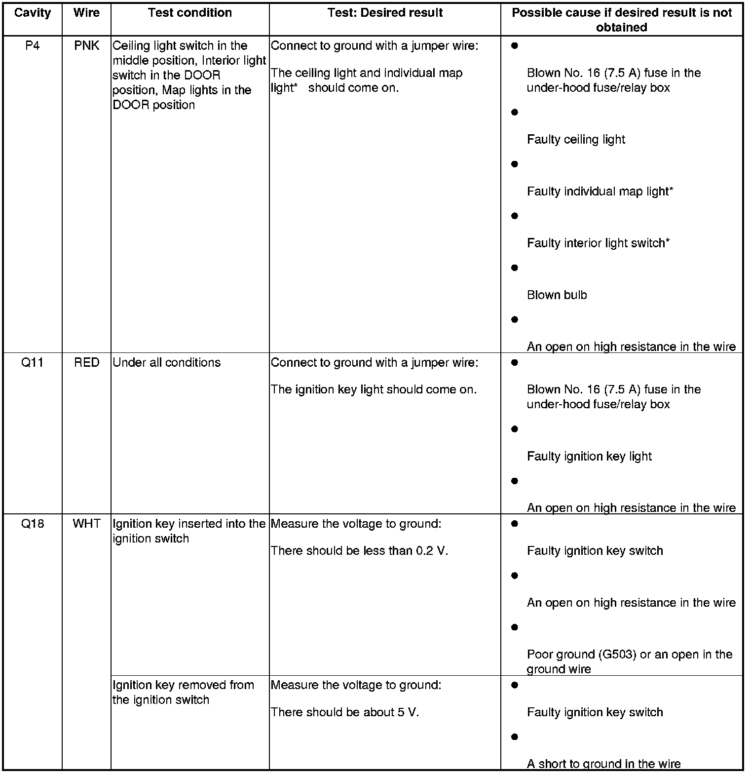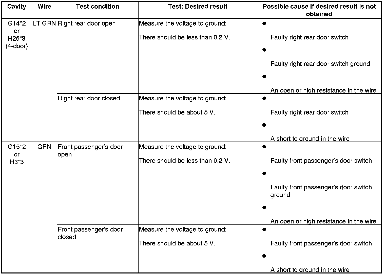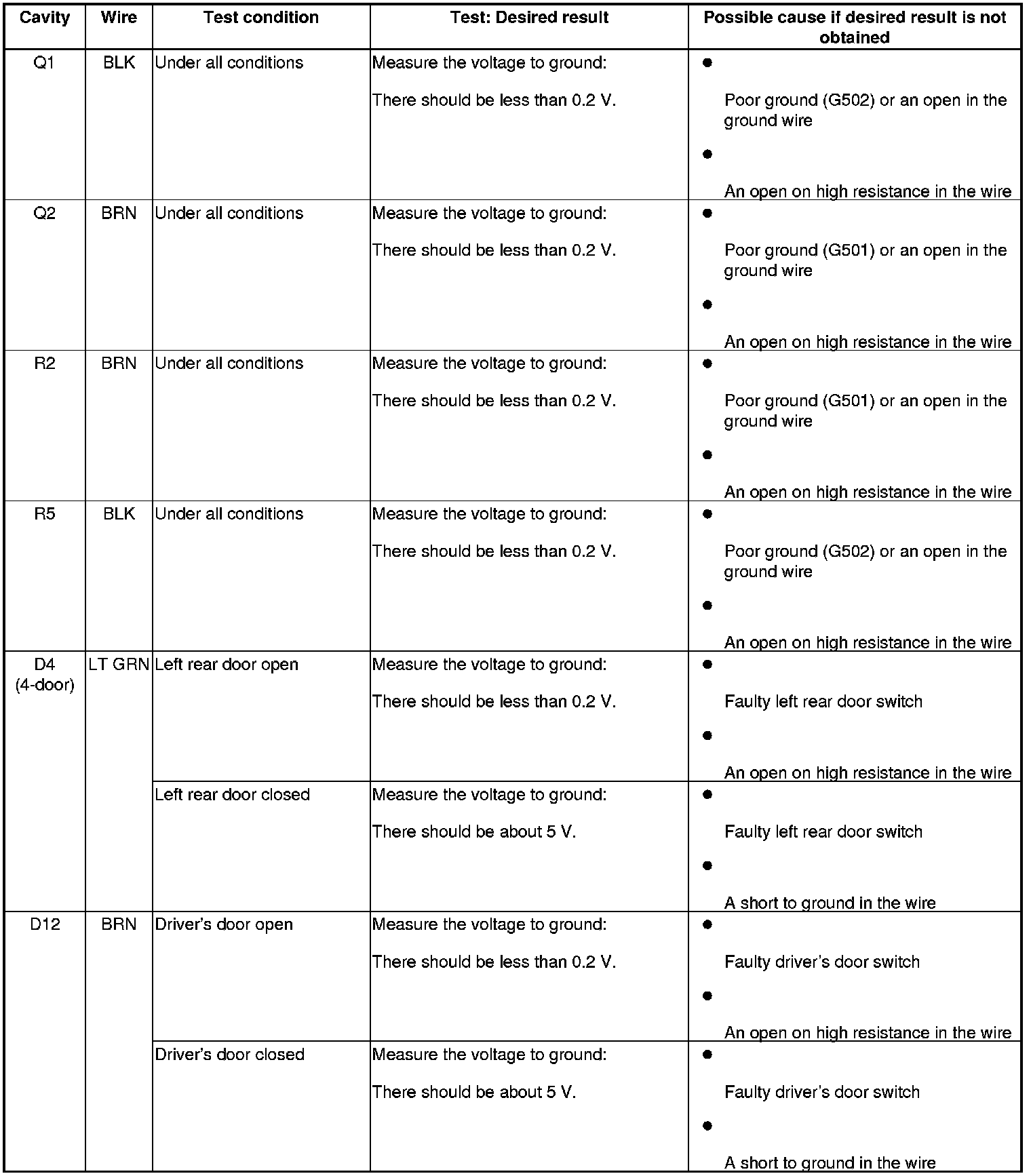 Entry Lights Control System (Drivers and Passengers MICU, and Door Multiplex Control Unit) Input Test
