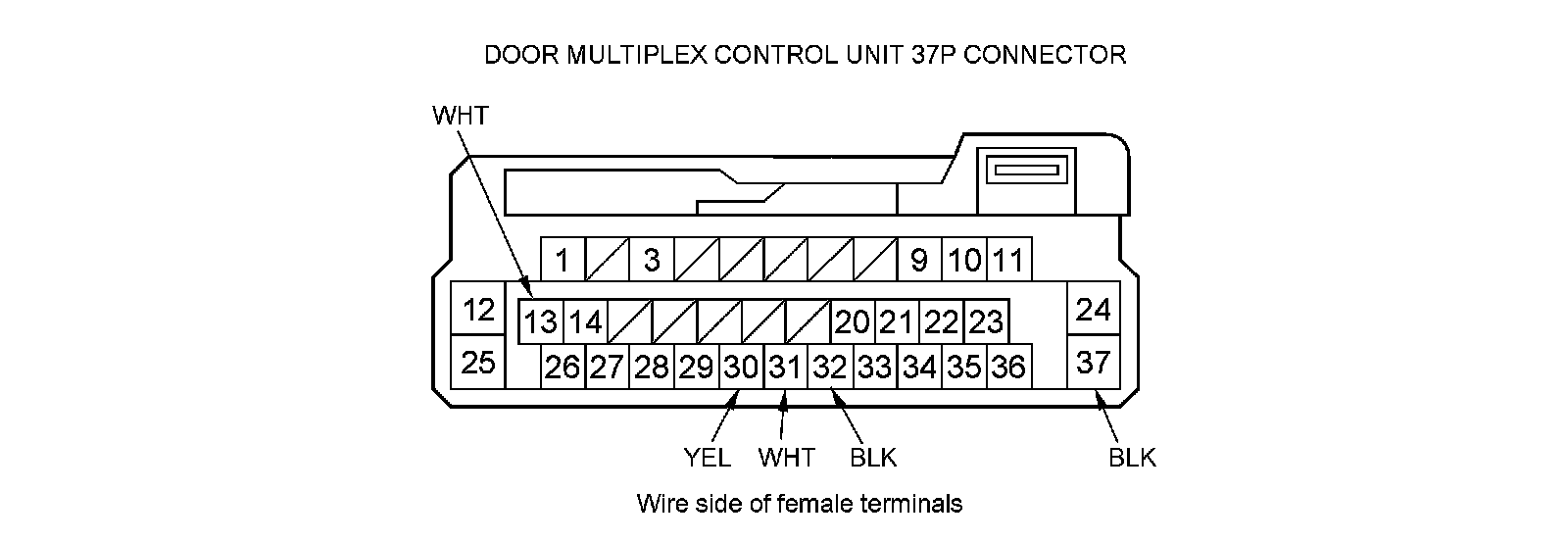 12. Reconnect the 37P connector to the door multiplex control unit, and do these input tests at the following connector.