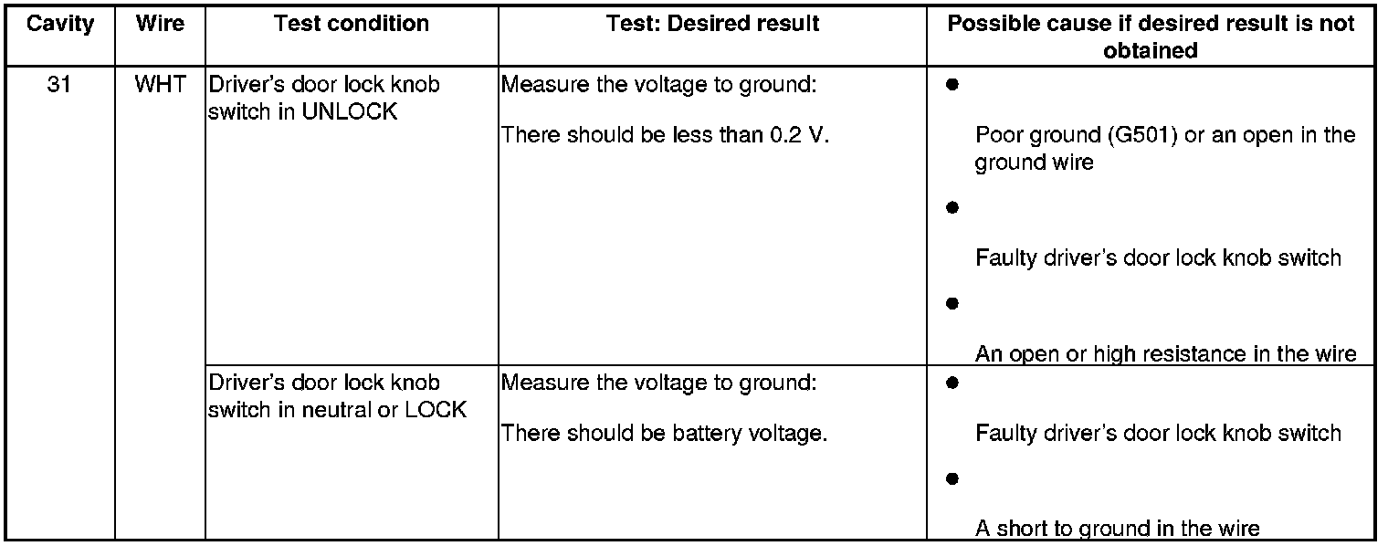 4. Reconnect the connectors to the driver's under-dash fuse/relay box, and do these input tests at the following connectors.