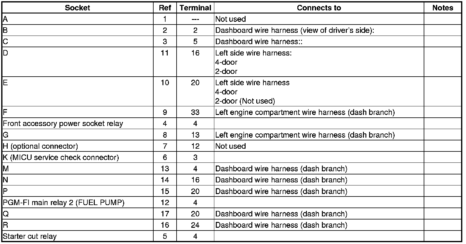 Driver's Under-dash Fuse/Relay Box Connector Locations